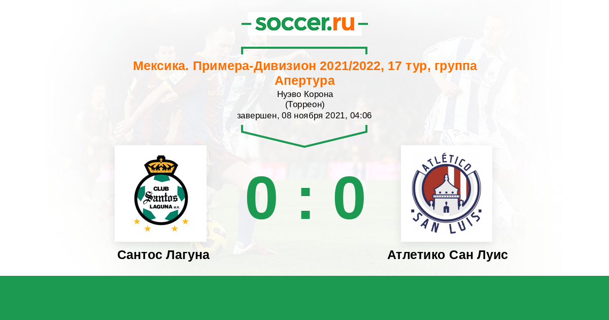 Протокол матча Сантос Лагуна против Атлетико Сан Луис