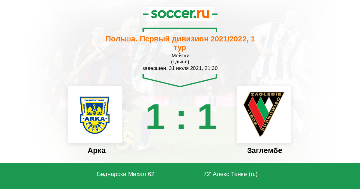 Протокол матча Арка против Заглембе