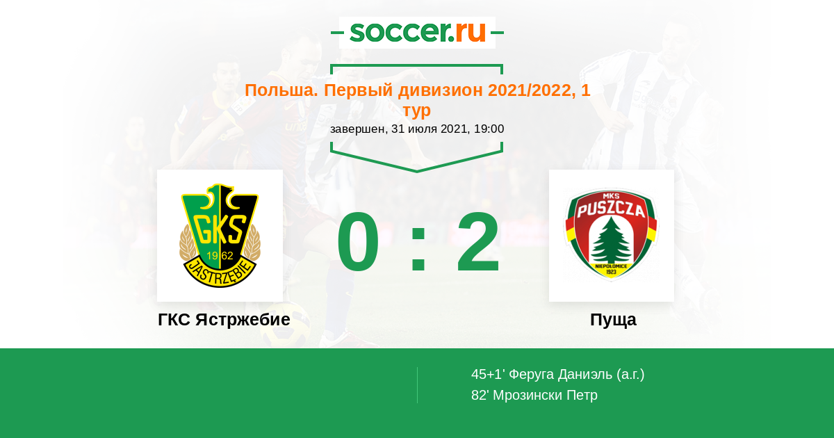 Протокол матча ГКС Ястржебие против Пуща