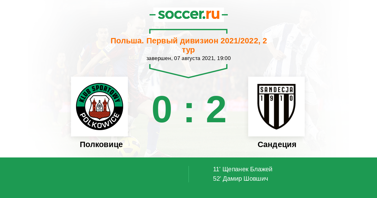 Протокол матча Полковице против Сандеция