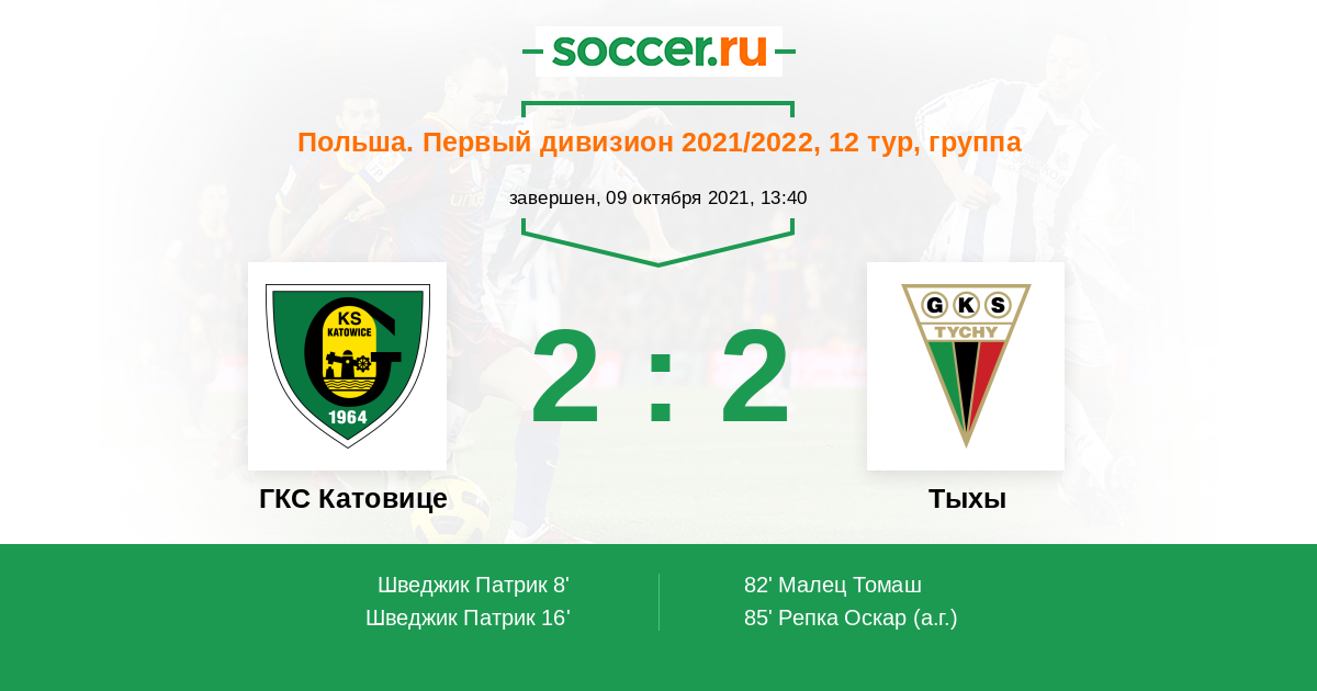 Протокол матча ГКС Катовице против Тыхы