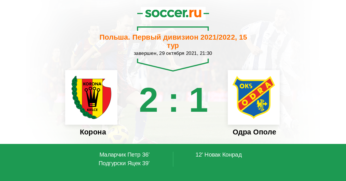 Протокол матча Корона против Одра Ополе