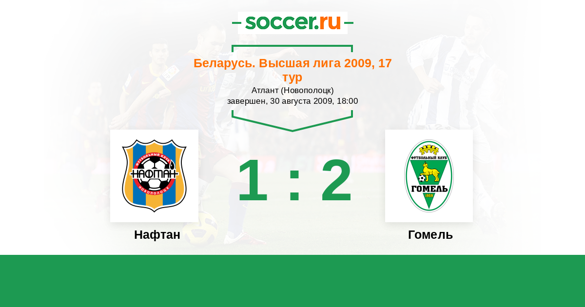 Беларусь. Высшая лига 26.04.2009 Гомель Логотип футбольный клуб Гомель 1:3 Логотип футбольный клуб Нафтан (Новополоцк) Нафтан