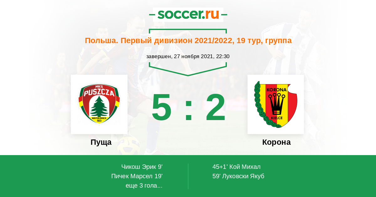 Протокол матча Пуща против Корона
