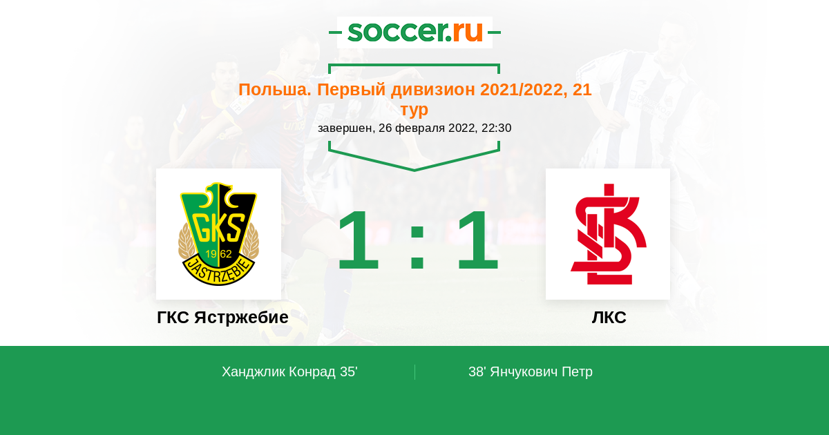 Протокол матча ГКС Ястржебие против ЛКС