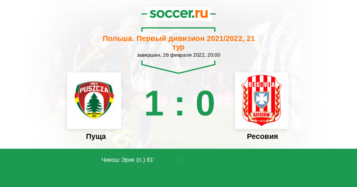 Протокол матча Пуща против Ресовия