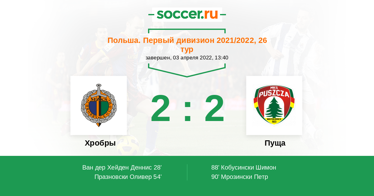 Протокол матча Хробры против Пуща
