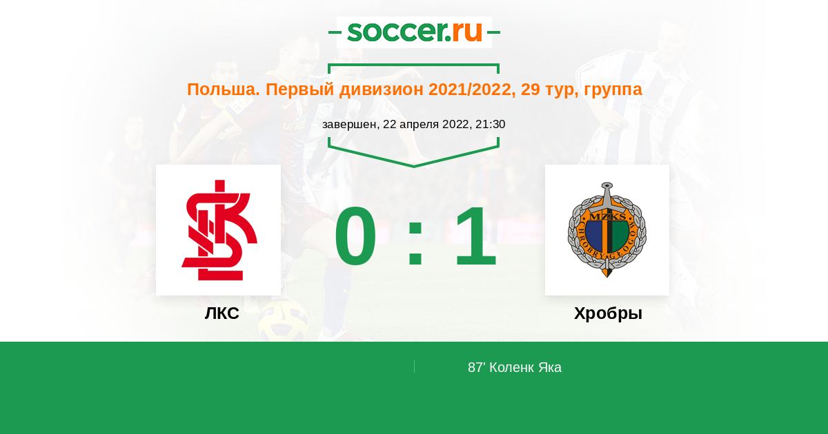 Протокол матча ЛКС против Хробры