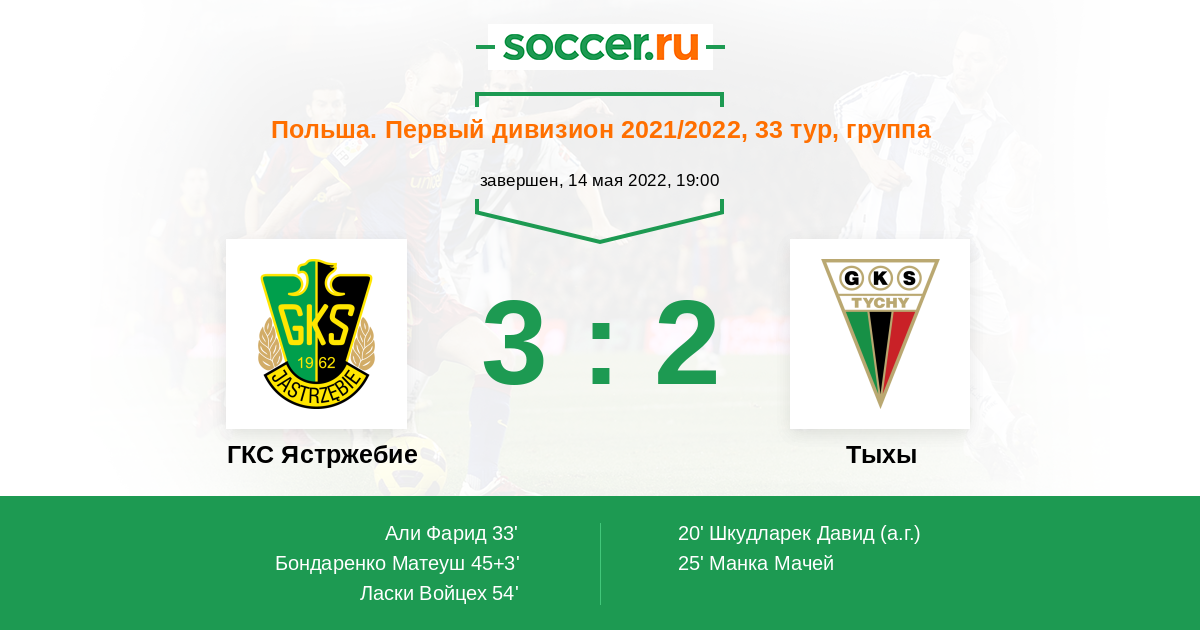 Протокол матча ГКС Ястржебие против Тыхы