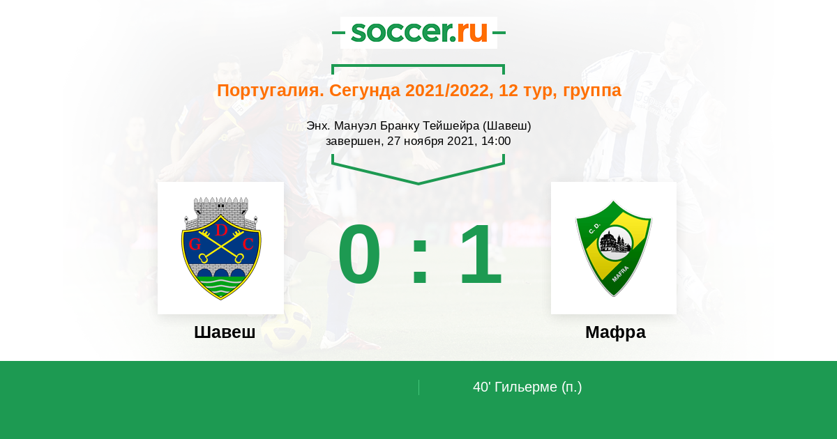 Протокол матча Шавеш против Мафра