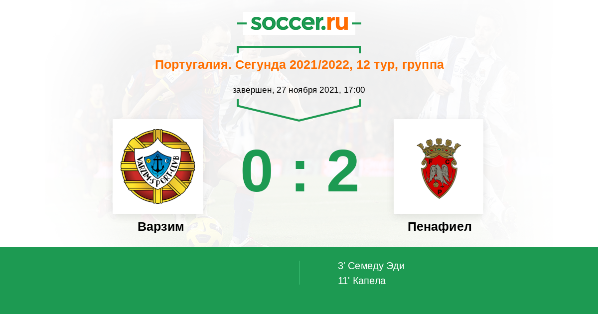 Протокол матча Варзим против Пенафиел