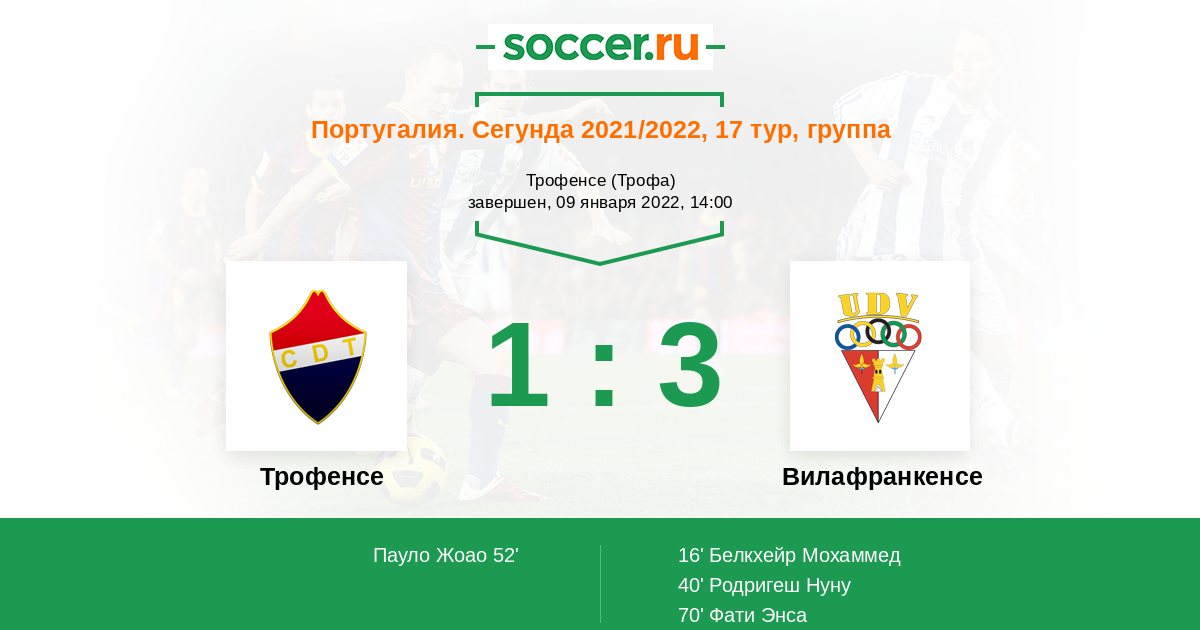 Протокол матча Трофенсе против Вилафранкенсе