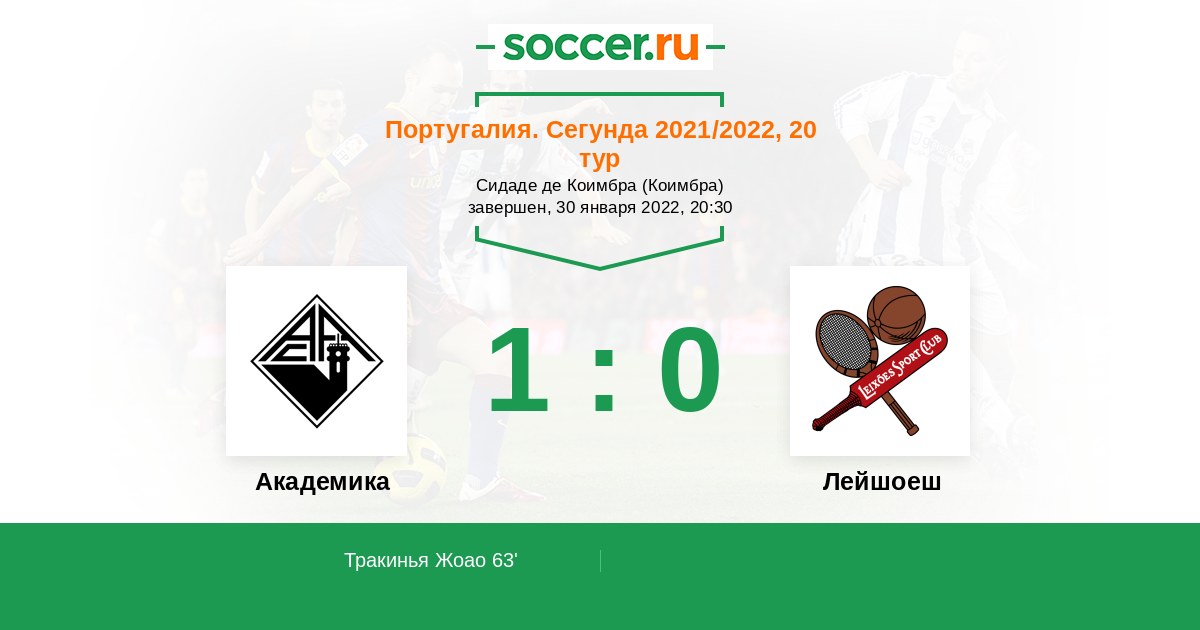Протокол матча Академика против Лейшоеш