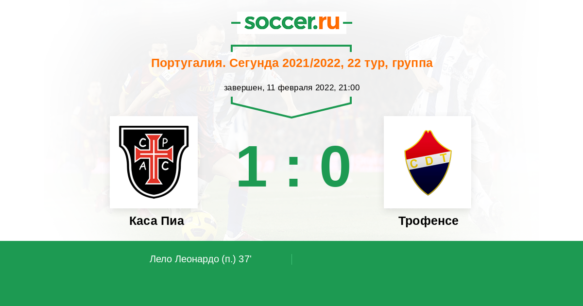Протокол матча Каса Пиа против Трофенсе