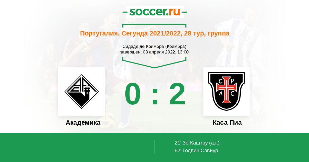 Протокол матча Академика против Каса Пиа