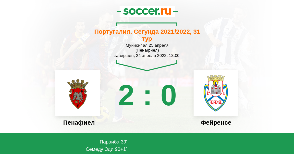 Протокол матча Пенафиел против Фейренсе