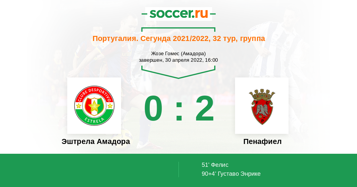 Протокол матча Эштрела Амадора против Пенафиел
