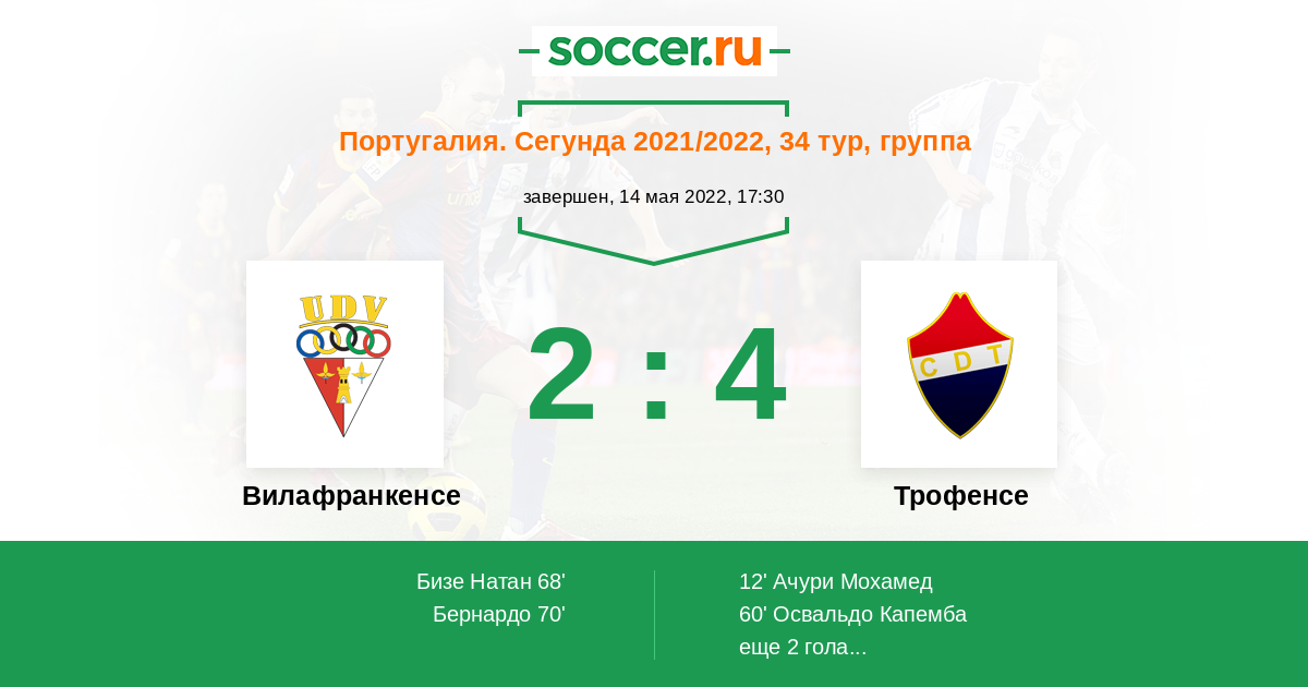 Протокол матча Вилафранкенсе против Трофенсе