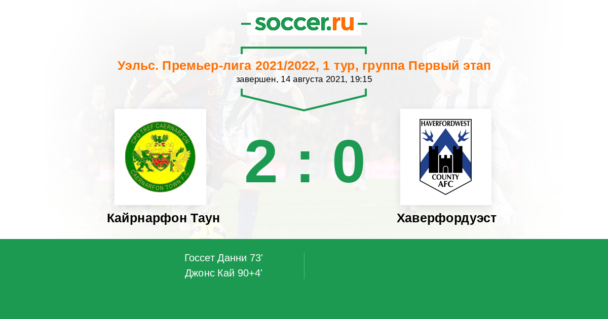 Протокол матча Кайрнарфон Таун против Хаверфордуэст