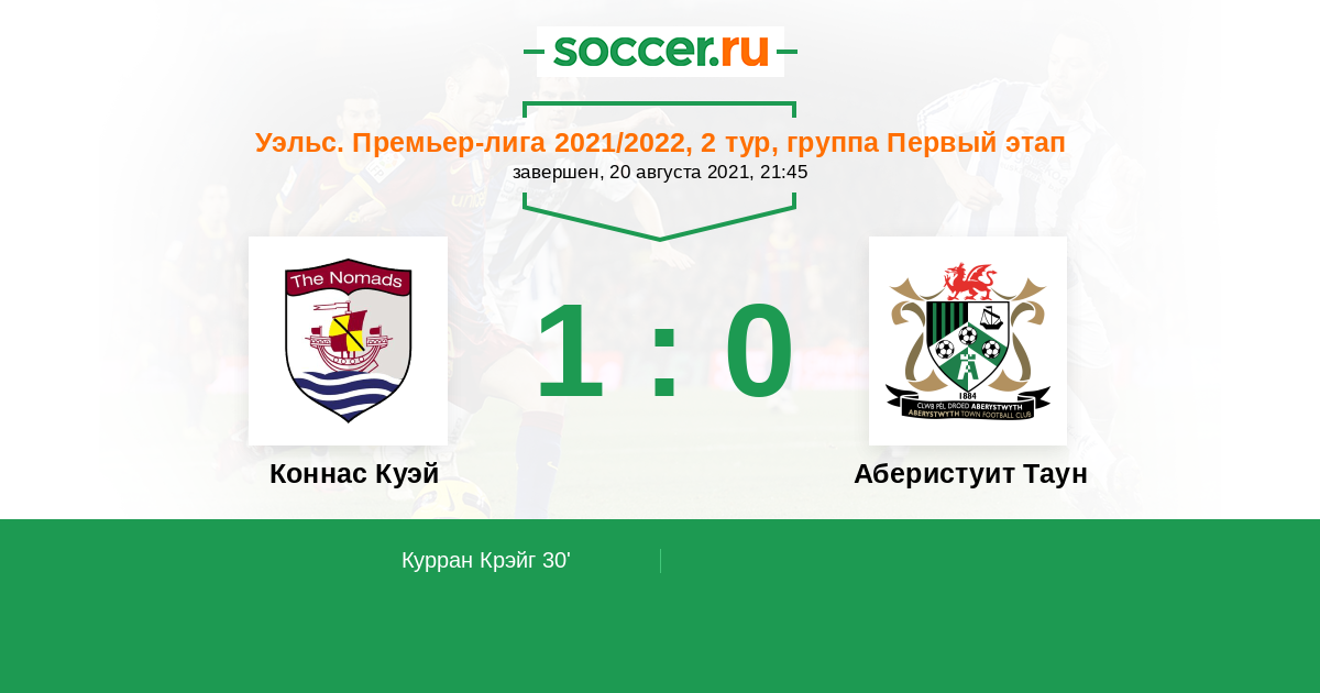 Протокол матча Коннас Куэй против Аберистуит Таун