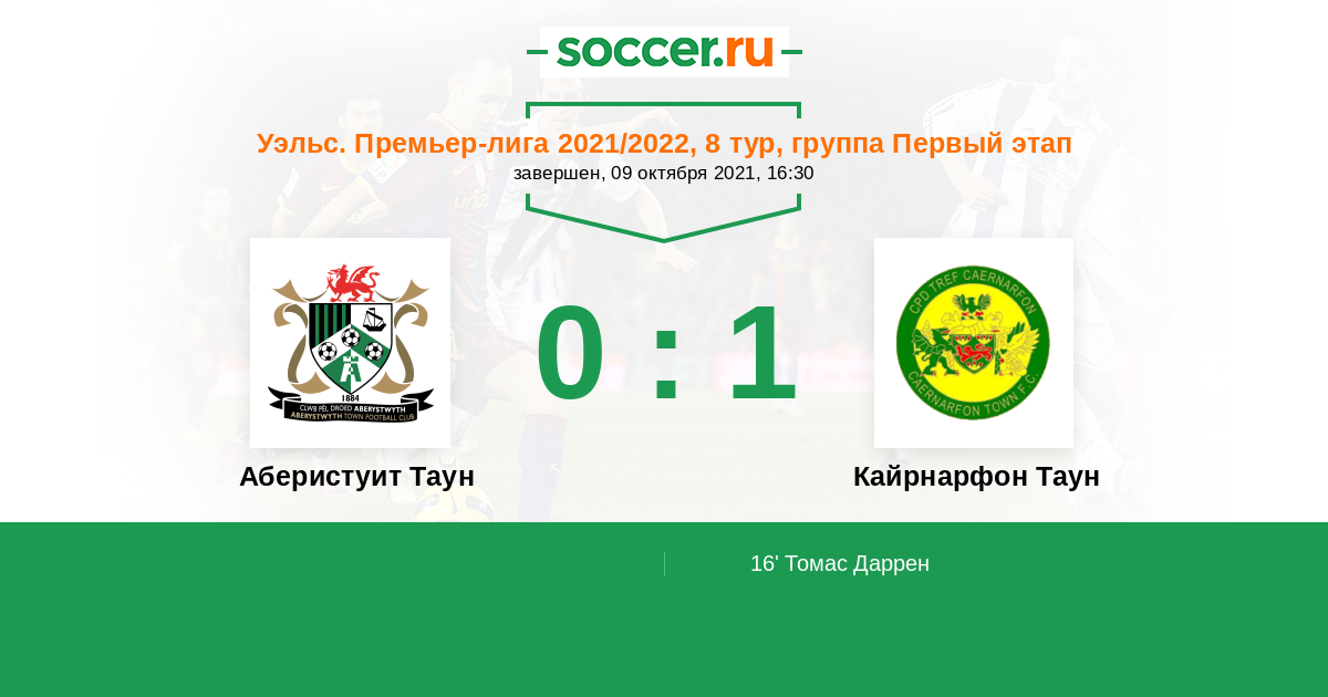 Протокол матча Аберистуит Таун против Кайрнарфон Таун