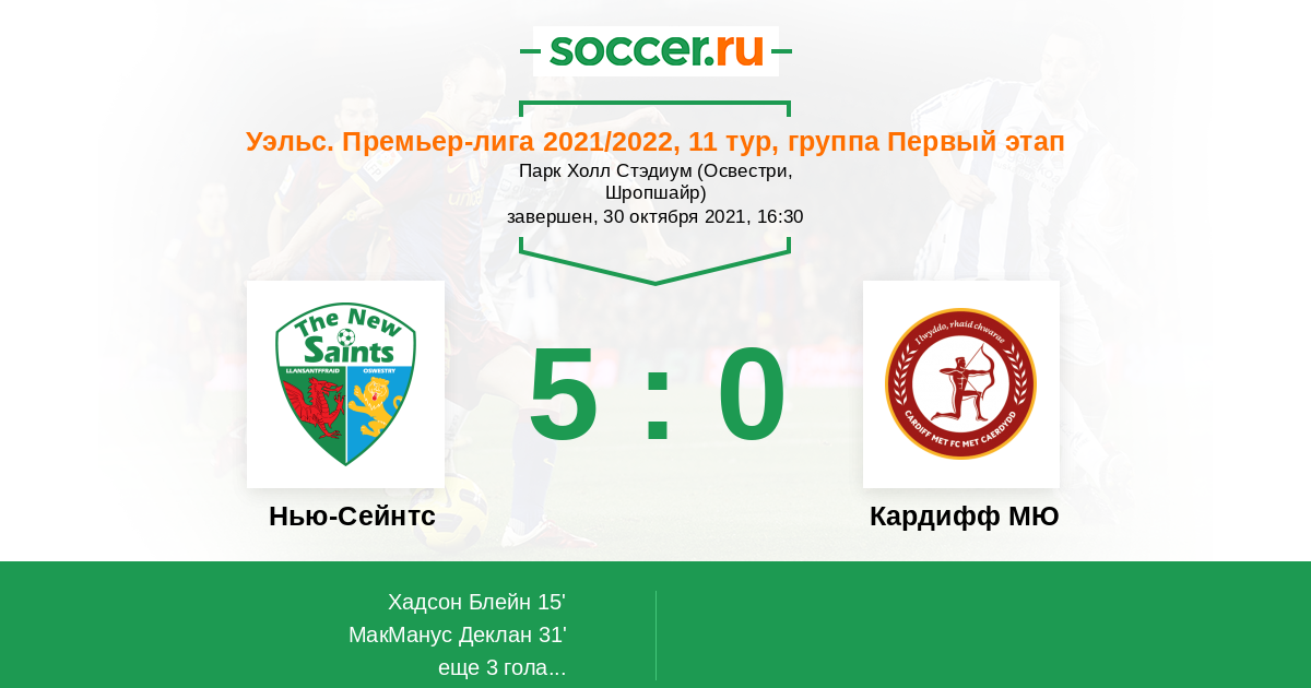 Протокол матча Нью-Сейнтс против Кардифф МЮ