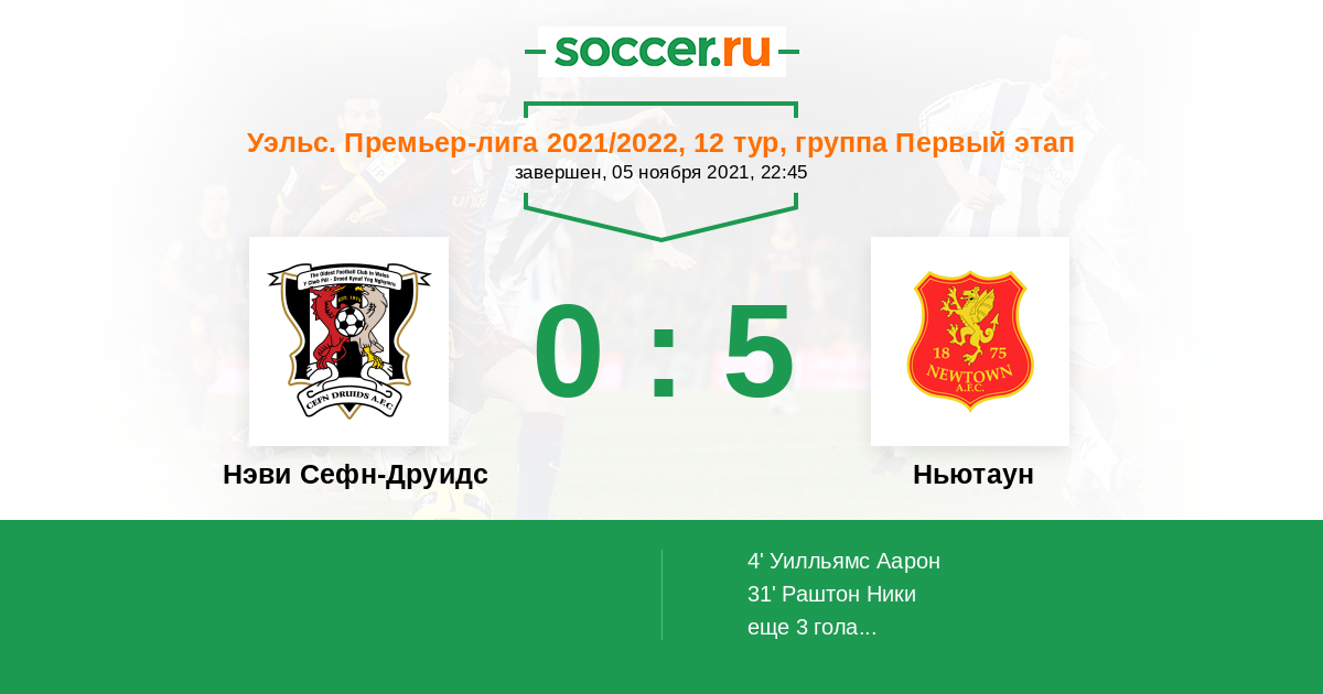 Протокол матча Нэви Сефн-Друидс против Ньютаун