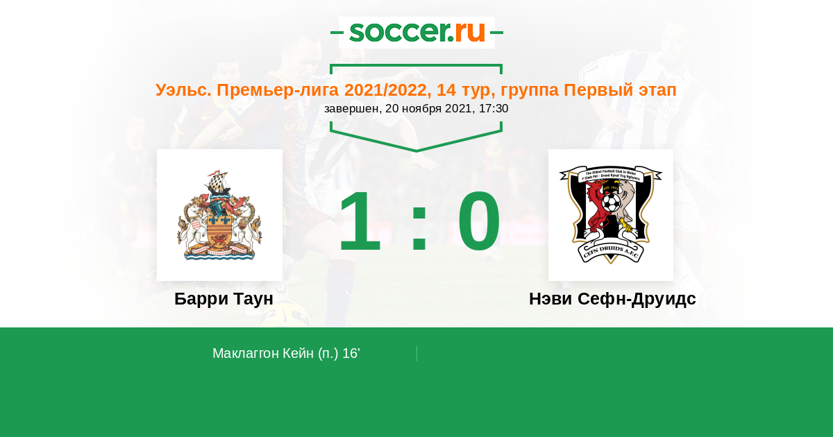 Протокол матча Барри Таун против Нэви Сефн-Друидс
