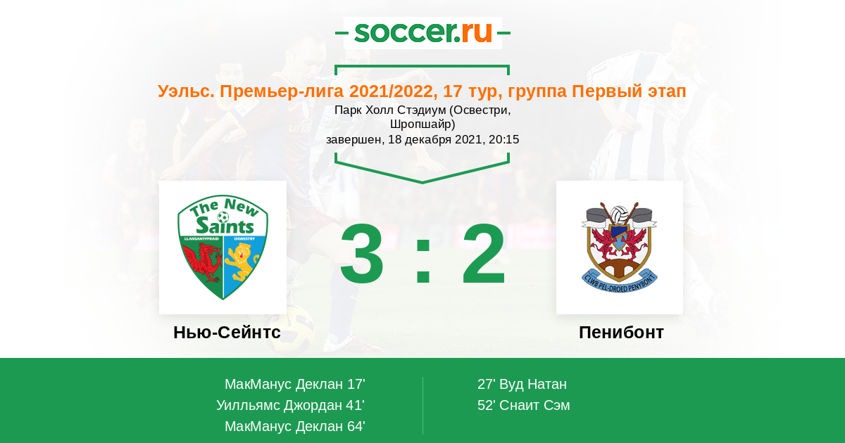 Протокол матча Нью-Сейнтс против Пенибонт