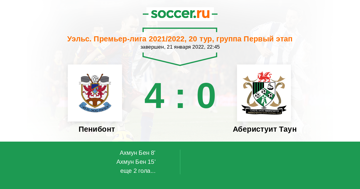 Протокол матча Пенибонт против Аберистуит Таун