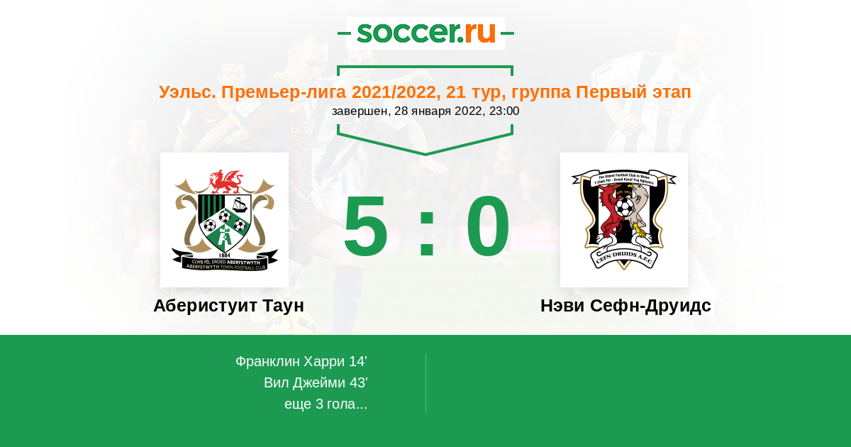 Протокол матча Аберистуит Таун против Нэви Сефн-Друидс