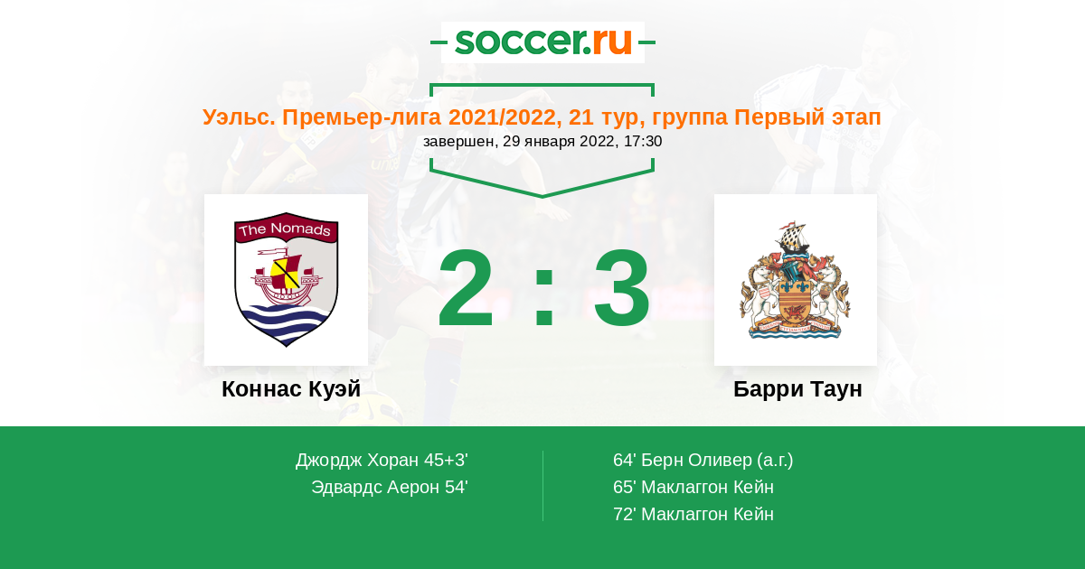 Протокол матча Коннас Куэй против Барри Таун