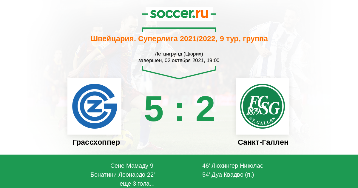 Протокол матча Грассхоппер против Санкт-Галлен
