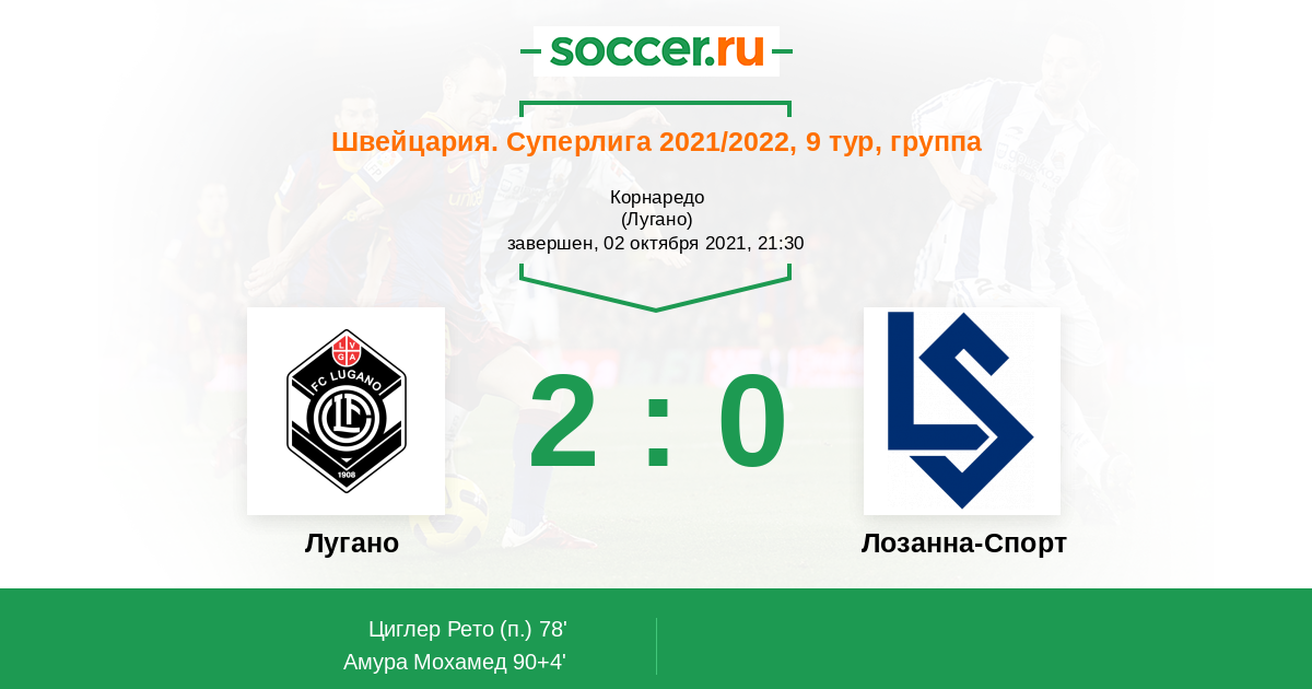 Протокол матча Лугано против Лозанна-Спорт