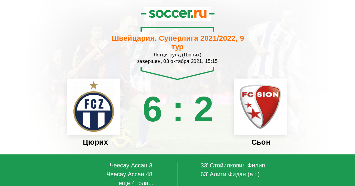 Протокол матча Цюрих против Сьон
