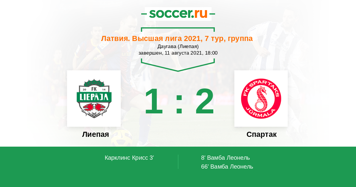 Протокол матча Лиепая против Спартак