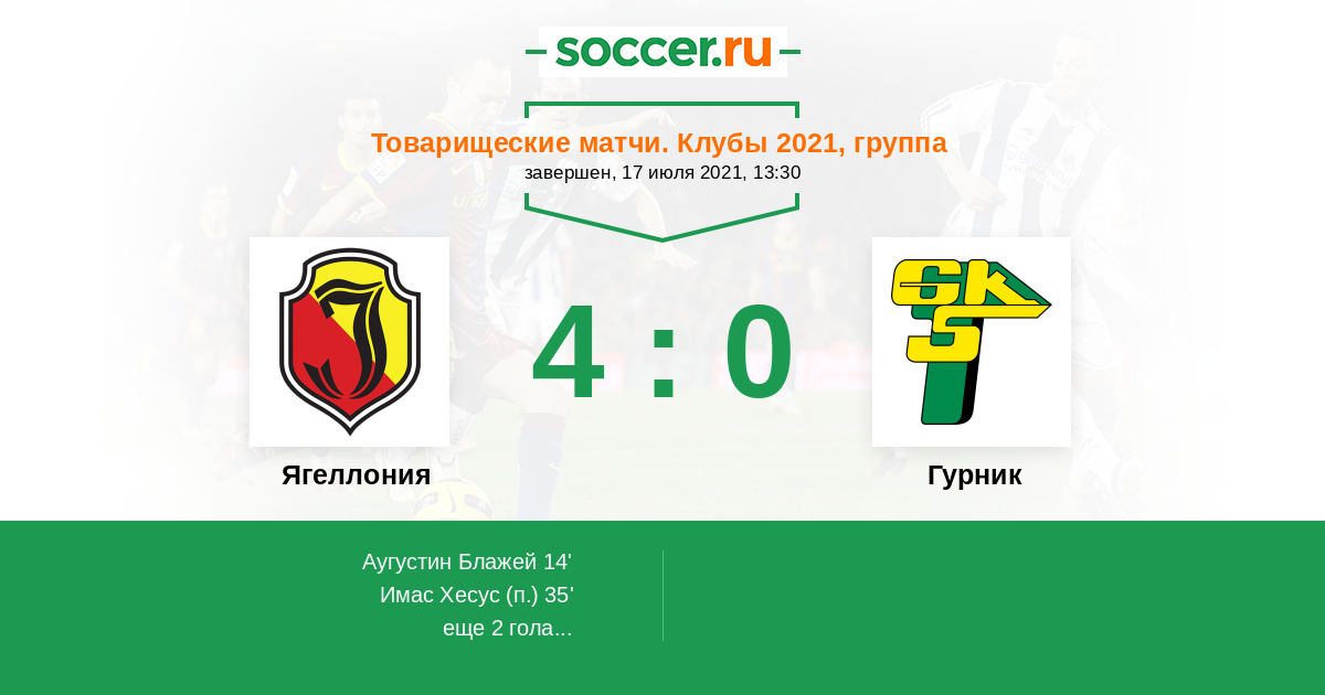 Протокол матча Ягеллония против Гурник