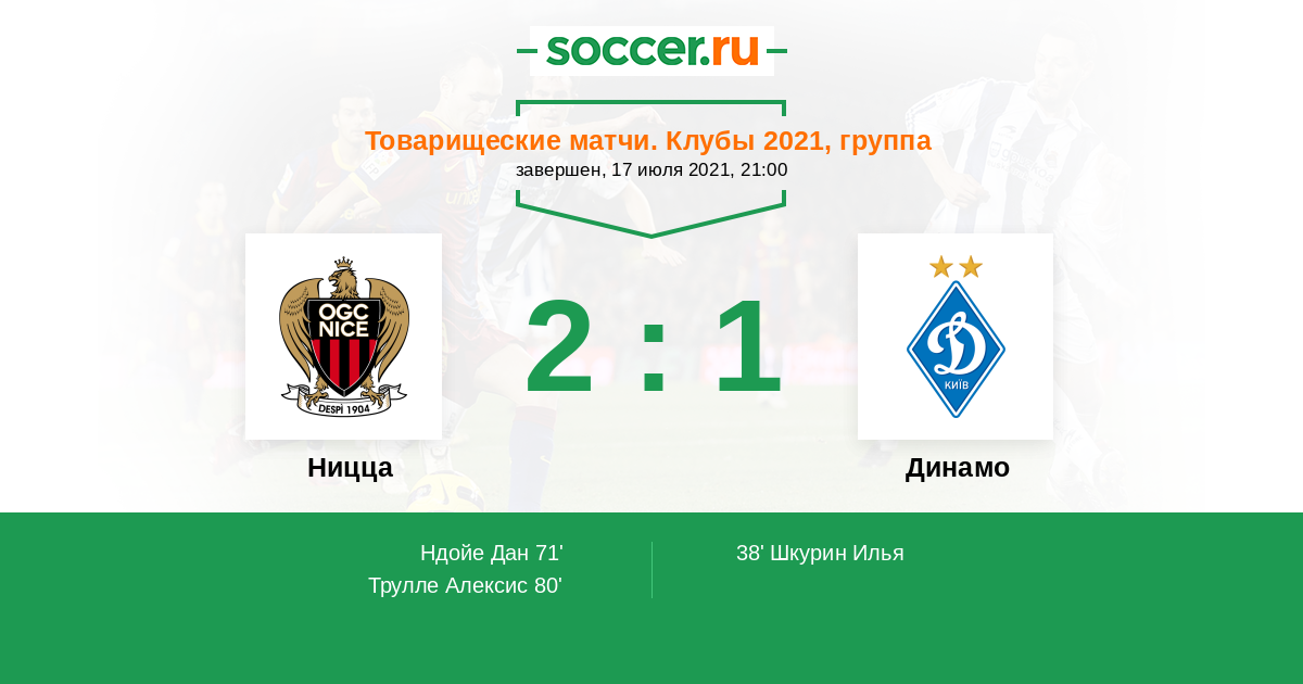 Протокол матча Ницца против Динамо