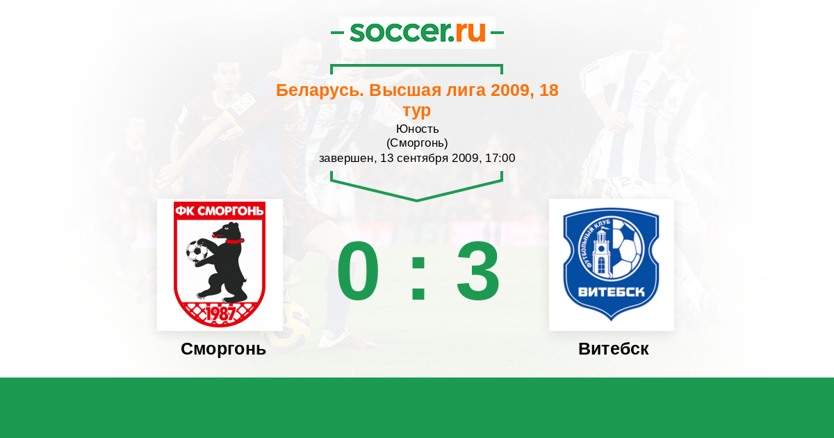 Беларусь. Высшая лига 02.05.2009 Витебск Логотип футбольный клуб Витебск 2:1 Логотип футбольный клуб Сморгонь Сморгонь
