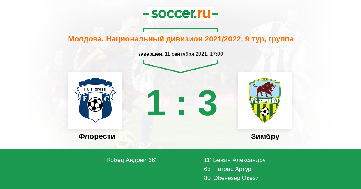 Протокол матча Флорести против Зимбру