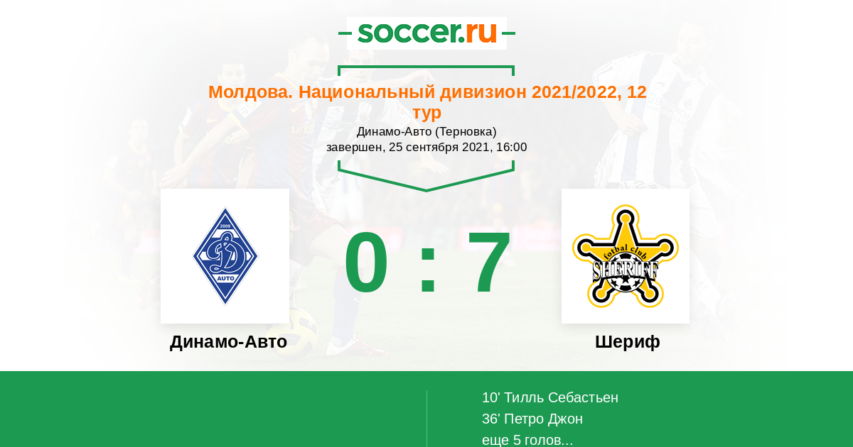 Протокол матча Динамо-Авто против Шериф
