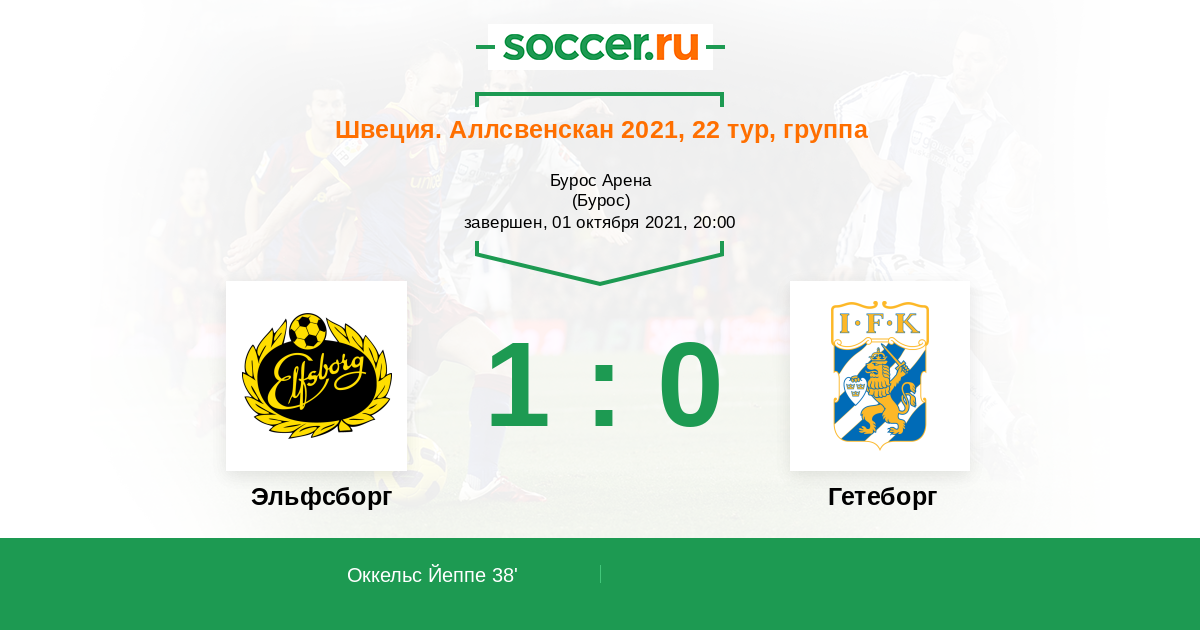 Протокол матча Эльфсборг против Гетеборг