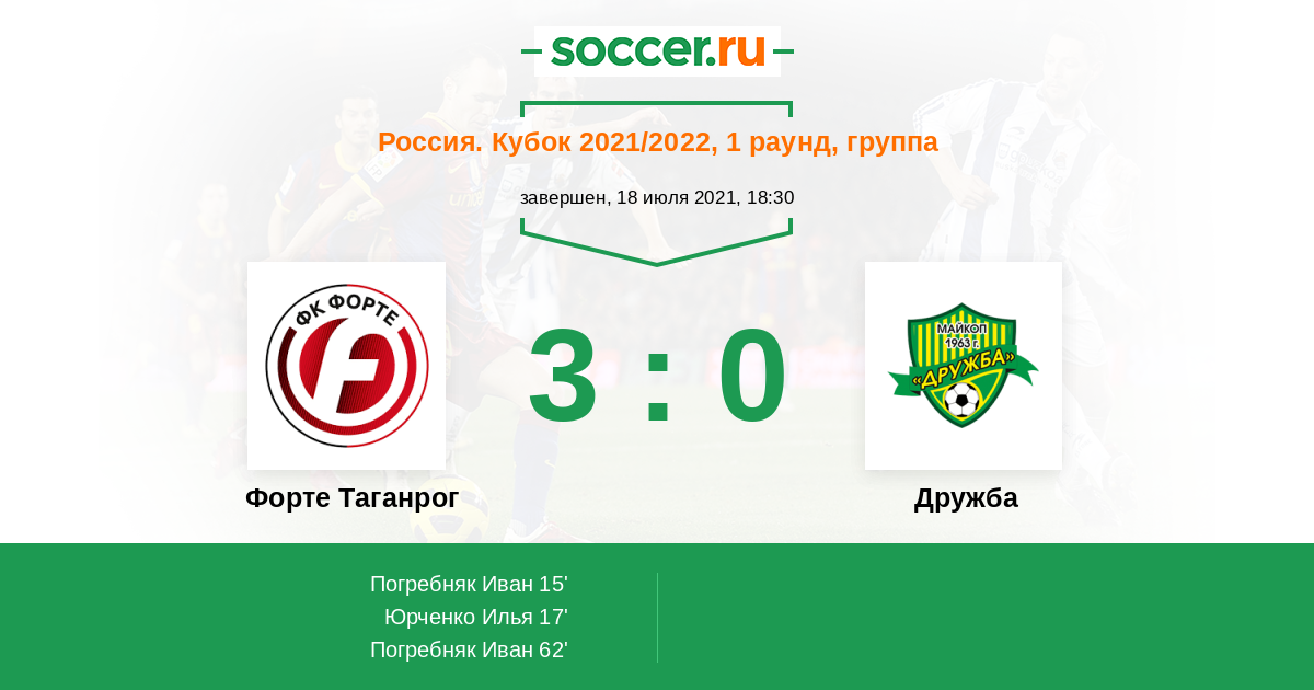 В прошлом сезоне обе команды выступали в ПФЛ. Причем дважды они сыграли друг против друга. В первом случае сильнее были футболисты “Дружбы” (2:1), во втором - победил “Форте” (5:2). Забавно, что не один из игроков ни в той, ни в другой команде не смог оформиться хотя бы дублем. Если говорить про итоговое расположение клубов в турнирной таблице, то “Форте” оказался на девятом месте, “Дружба” - на 14-м.