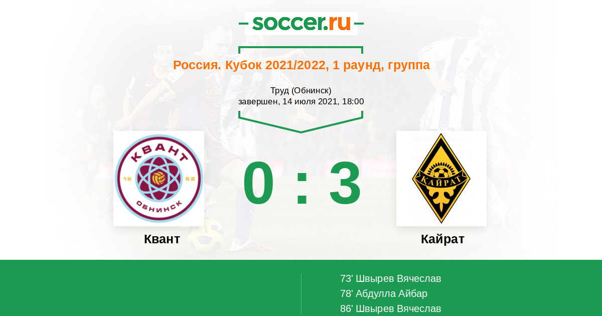 Протокол матча Квант против Кайрат