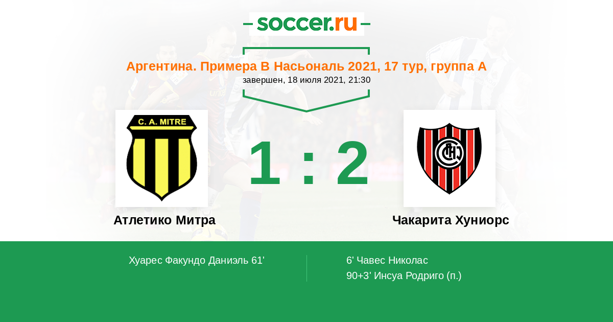Протокол матча Атлетико Митра против Чакарита Хуниорс