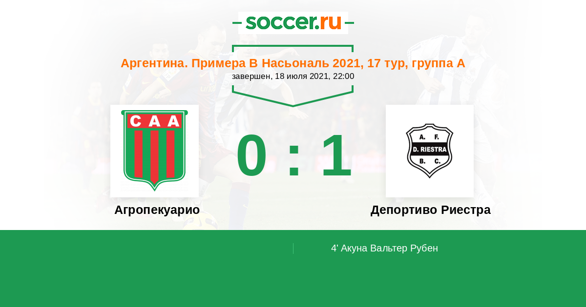 Протокол матча Агропекуарио против Депортиво Риестра