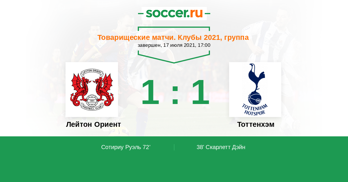 Протокол матча Лейтон Ориент против Тоттенхэм