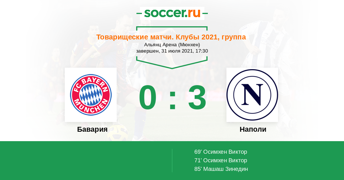 Протокол матча Бавария против Наполи