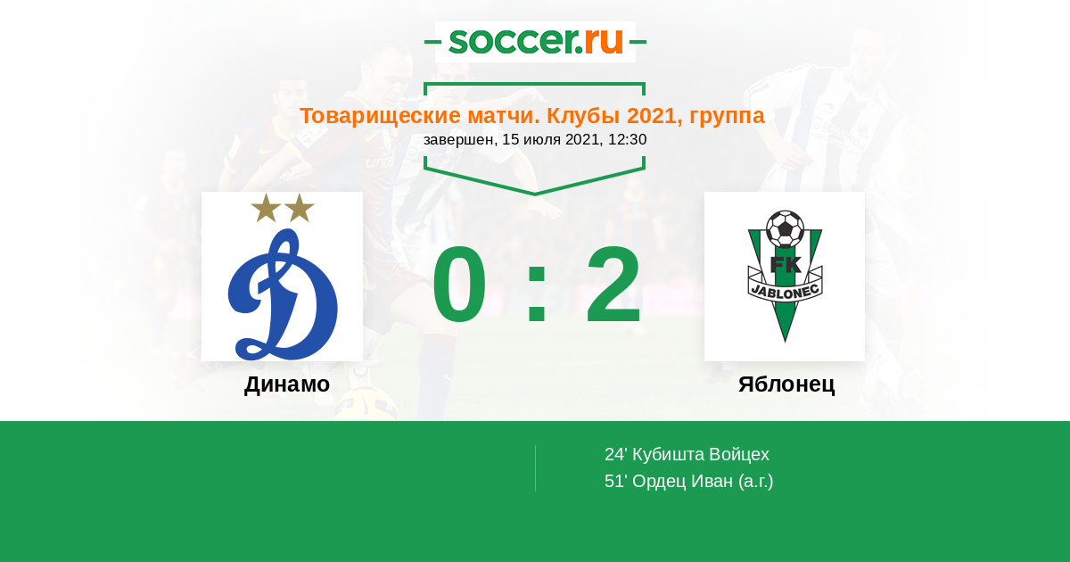 Протокол матча Динамо против Яблонец