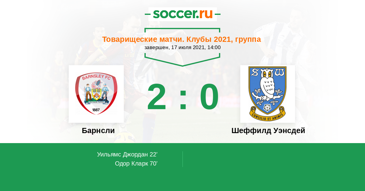 Протокол матча Барнсли против Шеффилд Уэнсдей